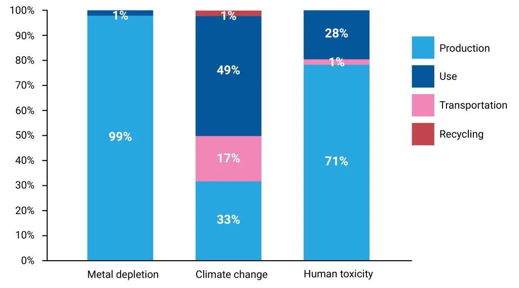 Ninety-nine percent of this impact comes from the production phase, which consists of the production of the components and assembly activities.